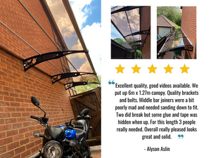 "Excellent quality, good videos available. We put up 6m x 1.27m canopy. Quality brackets and bolts. Middle bar joi...