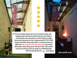 A customer sent us her 5-star review on the CANOFIX Polycarbonate Canopy that he installed.