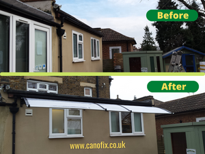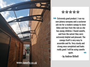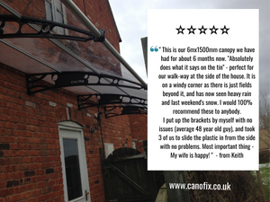 "This is our 6mx1500mm canopy we have had for about 6 months now. "Absolutely does what it says on the tin" - perfect for our walk-way at the side ...